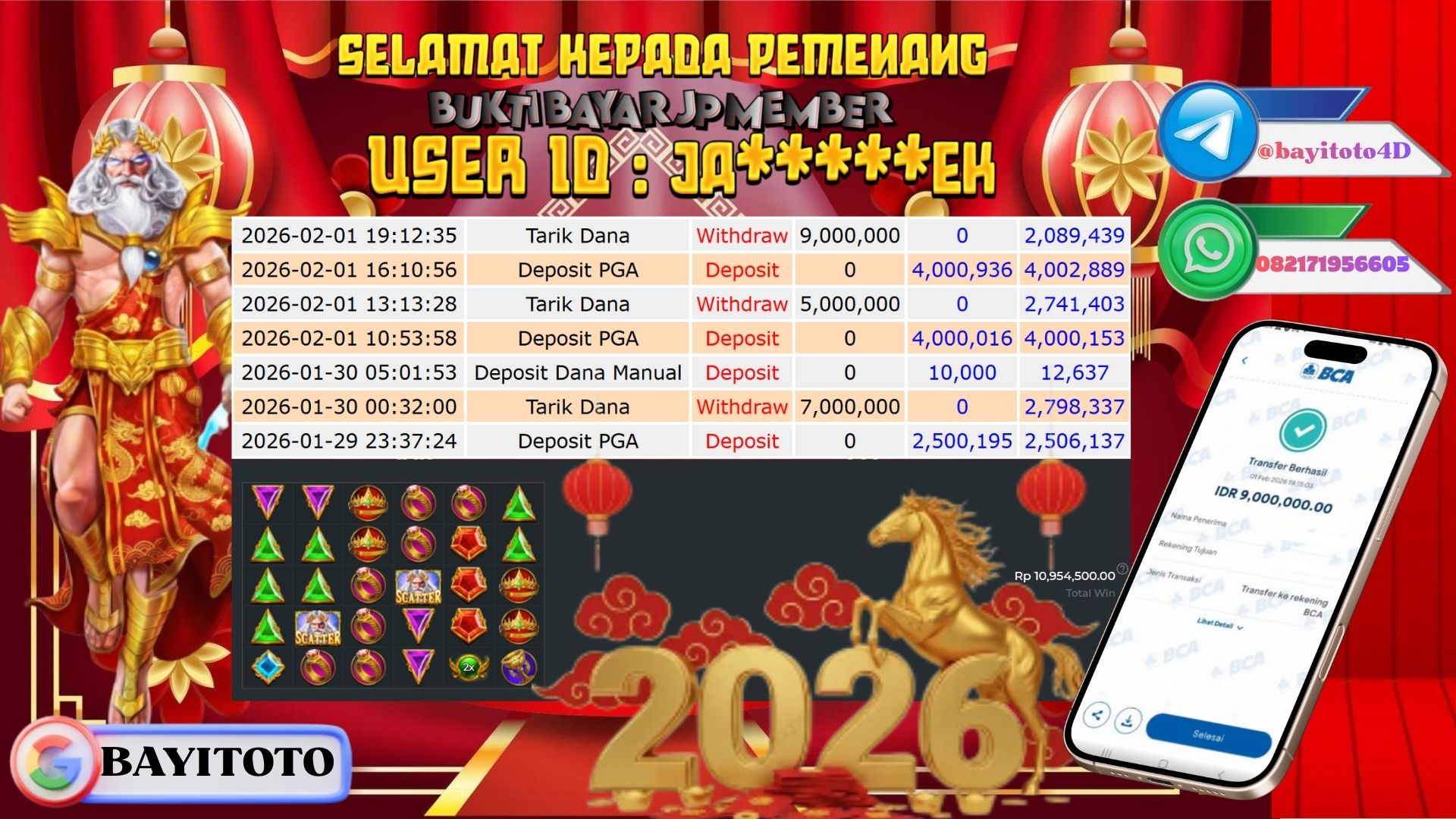 Selamat kepada User id : AB****** Telah berhasil mendapatkan kemenangan besar pa