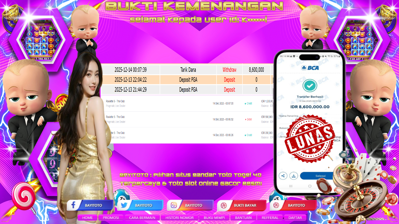 Selamat kepada User id : K******L Telah berhasil mendapatkan kemenangan besar pa